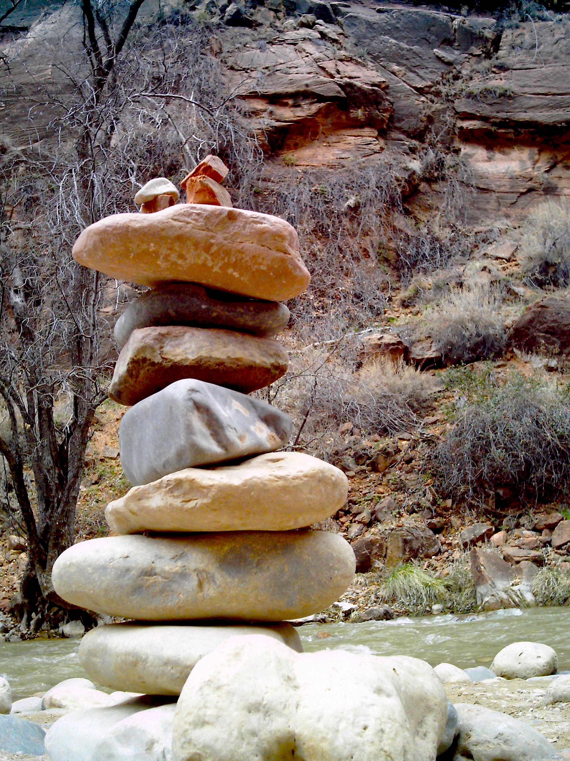 Temple of Sinawava Published October 29, 2014 at 1944 × 2592 in Zion National Park ← Previous Next → People made rock sculptures all over the beach.