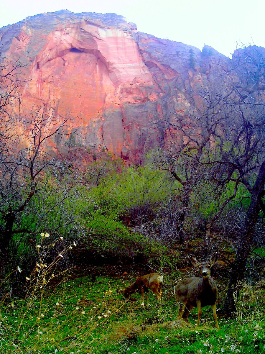 Zion National Park Published October 30, 2014 at 1944 × 2592 in Zion National Park ← Previous Next → The deer had no idea they were in one of the most gorgeous places on earth.